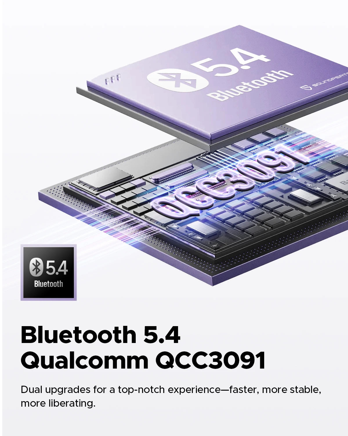 ·  Bluetooth 5.4 & Snapdragon Sound : Connexion rapide et ultra-stable avec transmission audio de haute qualité pour une expérience musicale fluide et sans interruption.